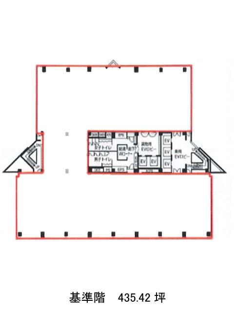 1993年竣工、地上8階の鉄骨鉄筋コンクリート造で、基準階は約435坪の大型貸しオフィスになります。貸室内は長方形の無柱空間のため、レイアウトの自由度は高いです。ビル外観は大きな窓ガラスが横一列に外壁タイルを挟みながら等間隔で縦に連なっており、遠くからでも視認性は良好です。ビル内に売店、カフェ、近隣にコンビニ、飲食店があり、広い公園もあるため自然を感じながらのリフレッシュも可能です。OAフロア、個別空調、男女別トイレ、エレベーター5基と設備は充実しており、機械警備導入のため安心してお仕事可能です。