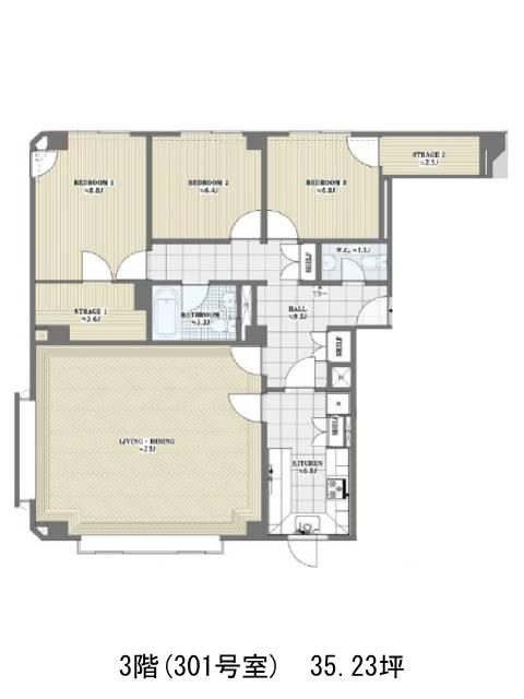 | 3 | 35.23坪 | 638,000円/月(18,110円/坪) | 348万円 | 即 |