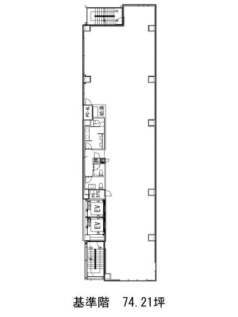 2023年8月竣工、地上10階建S造の新築ビルです。白いタイル貼りの壁面に、一部木目調を取り入れデザイン性の高い外観をしています。共用部は白を基調とした明るい内装。壁面緑化を取り入れ、憩いの空間となるでしょう。EV2基・空調・パントリー・駐車場・非常階段2箇所といった設備仕様が揃います。1~10階の総面積は653坪となります。間取りは細長い長方形で中央に支柱が無く、すっきりとした形状をしています。