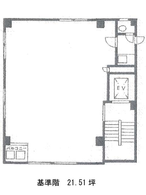 基準となる貸室は20坪強の規模。すっきりとした間取りですので、オフィスレイアウトは比較的行いやすいでしょう。給湯室とトイレの水回りは室内に設置されており、各階の独立性を高めています。