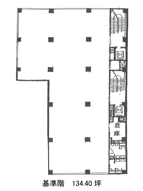 1フロア約134坪の広さを確保しつつ、室内には柱がいくつか配置されているため、レイアウトの際は軽く注意を。ただその分、空間にメリハリが出せるので、執務・会議・リフレッシュなど、ゾーニングの工夫が活きてきます。