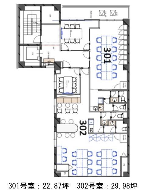 | 4 | 22.87坪 | 990,000円/月(43,288円/坪) | 応相談 | 即 |