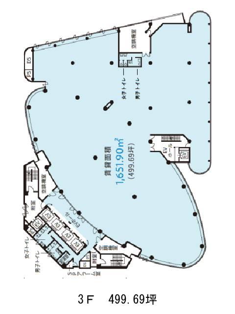 基準階は約288坪の広さを誇り、柱が外周に配置された整形なレイアウトは、自由度の高いオフィス設計を可能にします。天井高は2,480mm、床荷重は300kg/㎡で、セントラル空調と一部個別空調を併用。OAフロアや男女別トイレ(共用部)も完備されています。