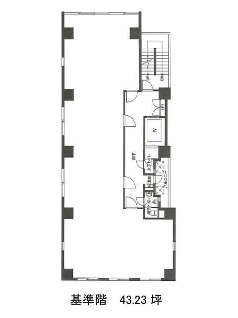 大規模なビルが建ち並ぶ甲州街道沿いに位置する地上10階建てです。前面がブルーのタイル張りのスリムな外観で、1階でコンビニが営業中ですので休憩時等に活用できます。基準階面積約43坪の室内はL字型に近く、個別空調を完備しています。また男女別トイレ等の共用部が室外にまとまっていますので、レイアウトがしやすそうです。当物件の竣工年は1984年ですが、新耐震基準に適合する構造です。さらに不停止機能付きエレベーター1基を備え、機械警備によるセキュリティ管理を行っていますので高い安全性が期待できます。外回り等の際には電車のほか目の前にあるバス停からのバス移動も可能です。