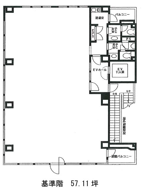 基準階は約57坪。ほぼ整形の間取りで、柱が外周部に配置されているため、レイアウトの自由度が高い点が魅力です(OAフロア仕様)。