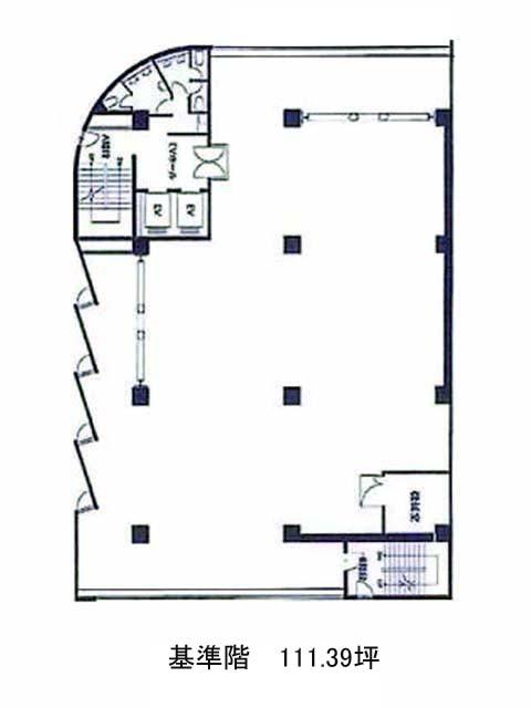 地上9階建てのSRC構造(耐震補強工事済み)で、基準階は約111坪の広さを確保しています。