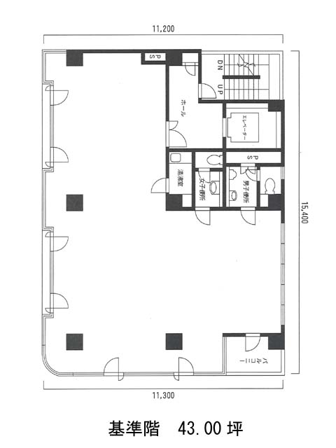 基準階は約43坪と、ワンフロアを自社利用しやすいサイズ感。区画によってやや仕様が異なる点には留意が必要ですが、その分、用途やレイアウトの柔軟性が広がります。