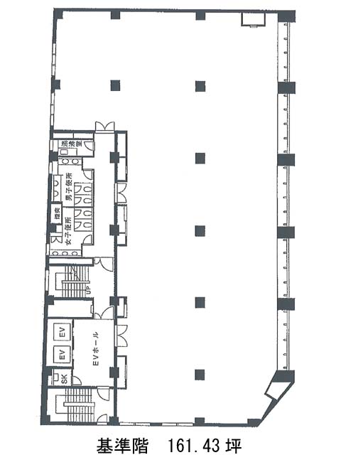 1961年竣工、地上8階建てSRC造のビルです。耐震補強工事実施済です。白と明るいブラウンを基調とした、温かみなる外観をしています。ガラス面が多く、室内に十分な採光が取り入れられるでしょう。基準階面積は161.43坪です。貸室に出入口が複数あり、来客用と動線をわけられるでしょう。設備仕様として、EV・個別空調・貸室外の男女別トイレがあります。セキュリティとして安心の機械警備が導入されています。