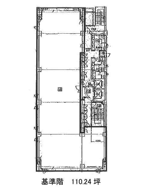 基準階は約110坪とゆとりある広さ。L字型で無柱設計のため、執務エリア・会議室・リフレッシュスペースなどのゾーニングも自在に対応可能です。柱を避けたレイアウトが求められる業種や、多機能な空間を計画する企業にとっては、大きなメリットとなるでしょう。