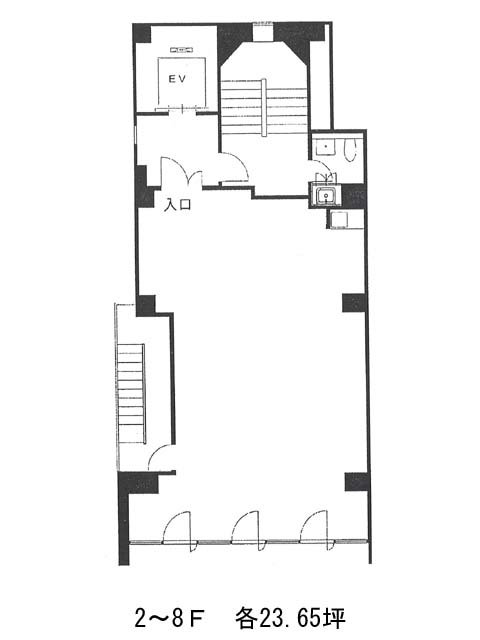 外観はガラス張りのグリッドデザイン。大通りに面しており、開放感があります。フロアによって貸室の広さがやや異なり、それぞれ20~30坪の規模です。トイレは室外の踊り場に設置されています。OAフロアあり。