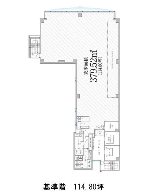 貸室は、天井高2,800mm・約115坪の無柱空間。レイアウトの自由度が高く、床荷重や電気容量などのスペック面も申し分ありません。OAフロア・個別空調・2回線受電など、機能的な設備がそろっているので、長く安定して使いやすいオフィスです。