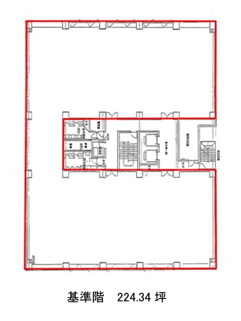 外観は全体的に淡いグレーを基調としており、とてもシンプルな構造になっております。周辺には、コンビニや飲食店、郵便局などが複数あるためとても利便性が高いです。またビルの1Fにはスーパーが入っているため、帰宅時などに夕食の買い出しをしてから帰宅することもできます。ビル内のトイレは男女別となっており、駐車場もあるため、社用車を使う場合も便利です。基準階は約225坪あり、室内はコの字型の形をしていますが、柱は壁に沿ってあるため、比較的レイアウトは組みやすいでしょう。
