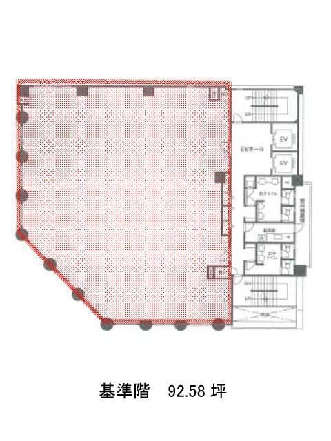 角地に立地しているため、日当たりがよく通風良好です。外観は全体的にベージュ系の色合いをしており、視認性の高いデザインとなっております。基準階は約90坪あり、室内は無柱空間で広々としているため、効率の良いレイアウトが組めそうです。ビル内にはOAフロアが備えられており、トイレは男女別となっております。駐車場もあるため、社用車を使う場合も便利です。また周辺にはコンビニや飲食店、郵便局などが複数あるためとても利便性が高いです。