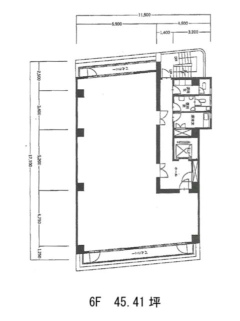 1フロア最大約50坪。約20坪程度の分割募集実績もあるため、必要に応じた選択が可能です。貸室内、柱は外周に配されており、レイアウトの自由度を保っています。
