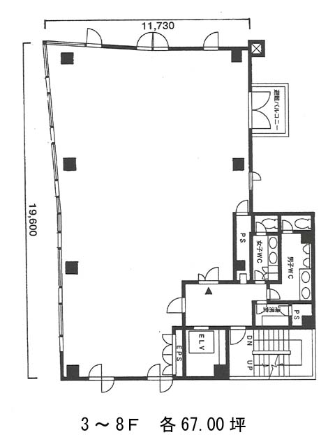 1993年竣工、地上8階建てS造のビルです。窓面が多く、室内に十分な採光が取り込めるでしょう。基準階面積約67坪。支柱が中央に無い為、オフィス家具やデスクのレイアウトがしやすいでしょう。設備仕様として、EV1基・湯沸室・非常階段1箇所・貸室外の男女別トイレ・OAフロア・個別空調・機械警備がそろいます。2016年にリニューアルが実施されています。