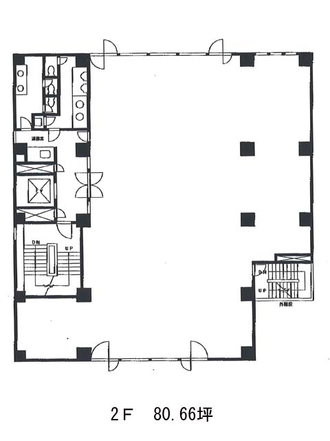 1991年竣工、鉄骨鉄筋コンクリート造の地上7階建てのビルです。サッカー通りから少し入った場所に位置し、オフィスビルや住宅が混在するエリアで、少し歩くと飲食店やコンビニが複数あります。落ち着いた色合いのタイル張りの外観です。白を基調とした大理石調のホールは高級感もあり来客時にも好印象でしょう。基準階は約80坪、階に寄って間取りやサイズが異なるため、ご相談ください。設備はエレベーターが1基、個別空調、トイレは男女別です。