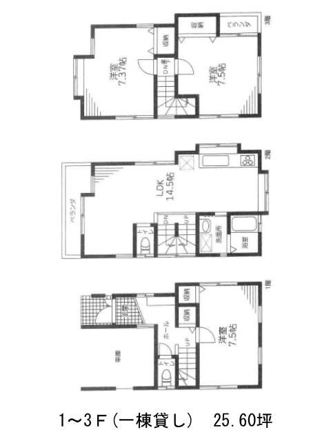 | 1-3F | 25.60坪 | 385,000円/月(15,039円/坪) | 70万円 | 即 |