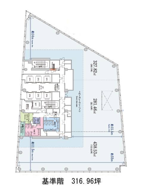 基準階は約316.96坪。